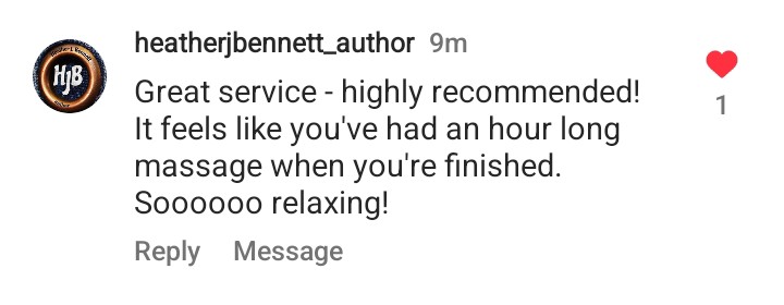 This is what it’s all about! Helping Heather feel relaxed after an hour of Reiki (note that Heather received only Reiki, not a physical massage) lights me up inside. Admittedly, it is also relaxing for me as a practitioner!